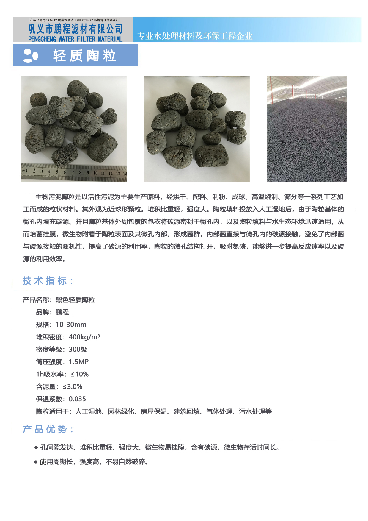 鞏義市鵬程濾材有限公司一家水過濾濾料 ——陶粒濾料生產(chǎn)廠家,鵬程濾材陶粒濾料有黏土陶粒 生物陶粒 頁巖陶粒還有絢麗多彩的養(yǎng)殖花卉陶粒濾料。根據(jù)使用環(huán)境不同,陶粒產(chǎn)品齊全廠家歡迎您咨詢。
