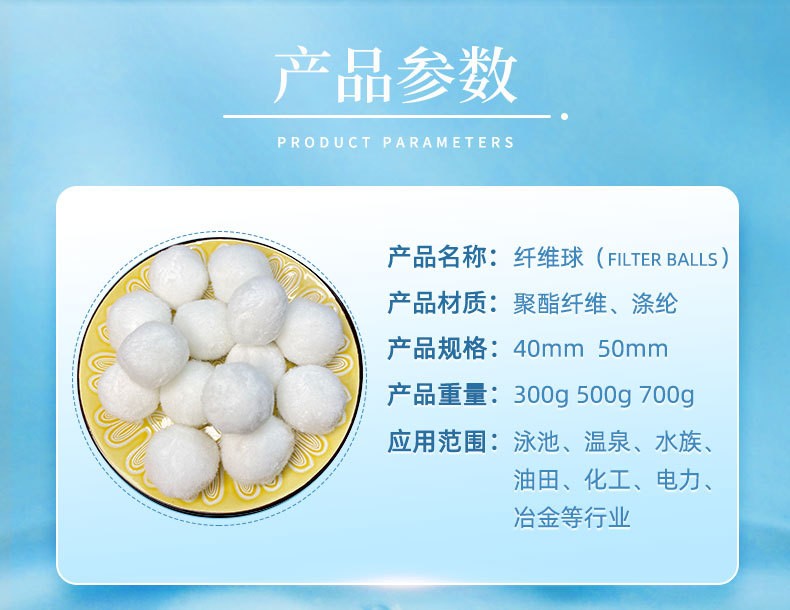纖維球填料具有彈性效果好、濾速快、空隙大、截污容量大、工作周期長(zhǎng)、過(guò)濾效果好、水頭損失小等優(yōu)點(diǎn)。適應(yīng)于各種水質(zhì)的過(guò)濾和精濾。