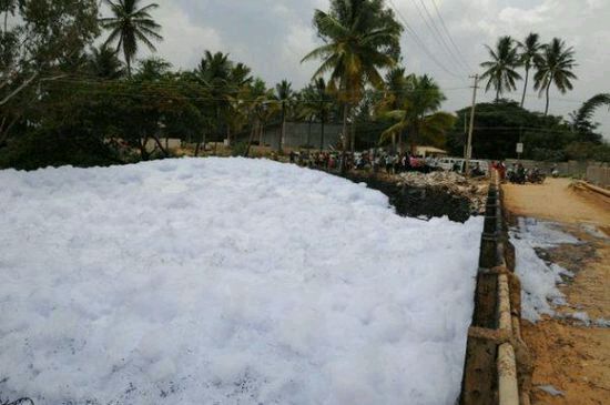 繼印度Varthur湖面因污染嚴重泛起泡沫之后,現(xiàn)在輪到Bellandur湖附近的居民擔心了。這些泡沫甚至還燃起了火苗,讓當?shù)鼐用窈吐愤^的人都非常驚慌。 在過去幾周,班加羅爾的Bellandur湖被幾英尺厚的白色有毒泡沫覆蓋,遠看就如白雪一般。而在白色泡沫之下,是被化學(xué)物質(zhì)和污水污染而變成黑色的湖水。附近的濕地過去對湖水起到了過濾的作用,卻都已經(jīng)在開發(fā)過程中被破壞了。失去了具有天然凈化作用的濕地,這些湖的污染變得很難控制。 當?shù)匚廴局卫砭值墓賳T表示,這是第一次人們觀察到這種現(xiàn)象。